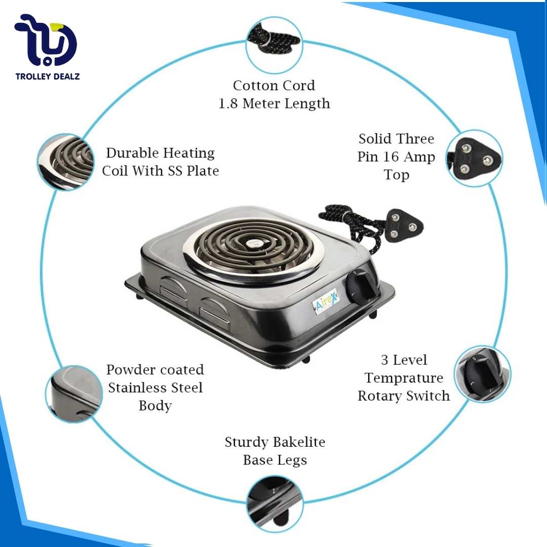 Equipped with an on/off indicator light, auto-thermostat control, and a heat-resistant body, this hot plate ensures safe and hassle-free operation. The compact and lightweight design makes it easy to carry, store, and use anywhere—perfect for small kitchens, dorm rooms, travel, and outdoor cooking.