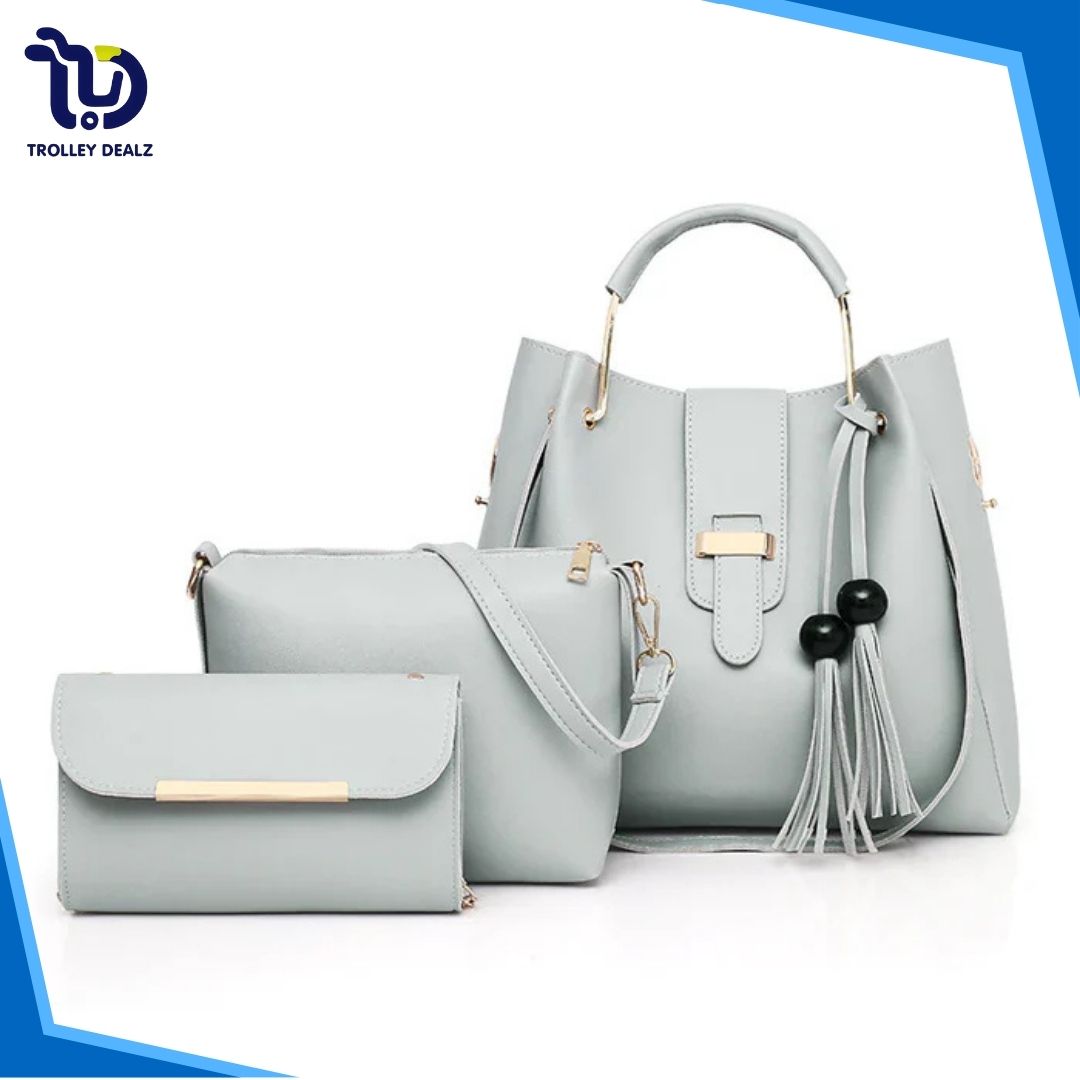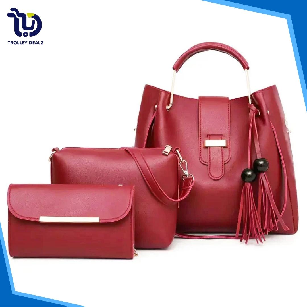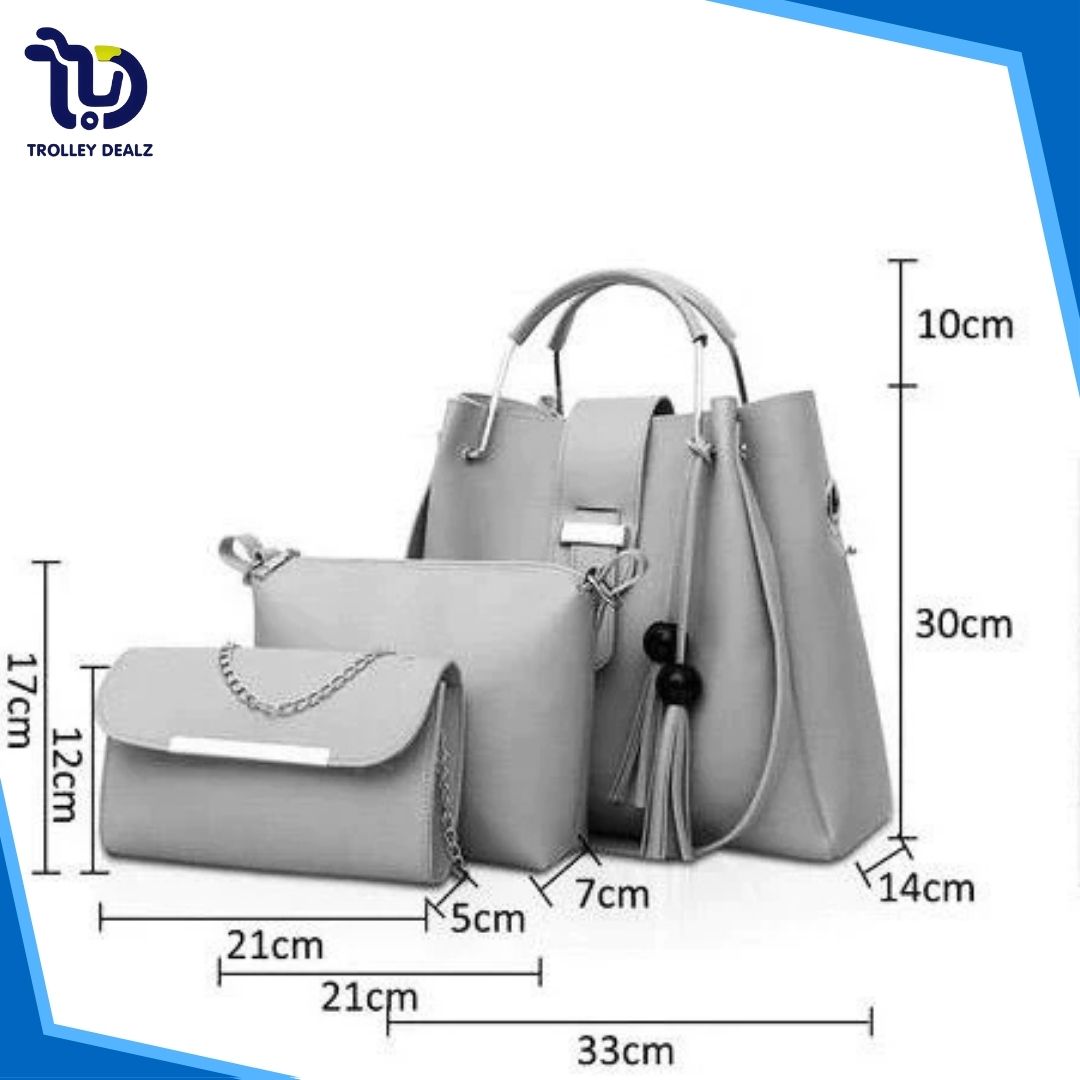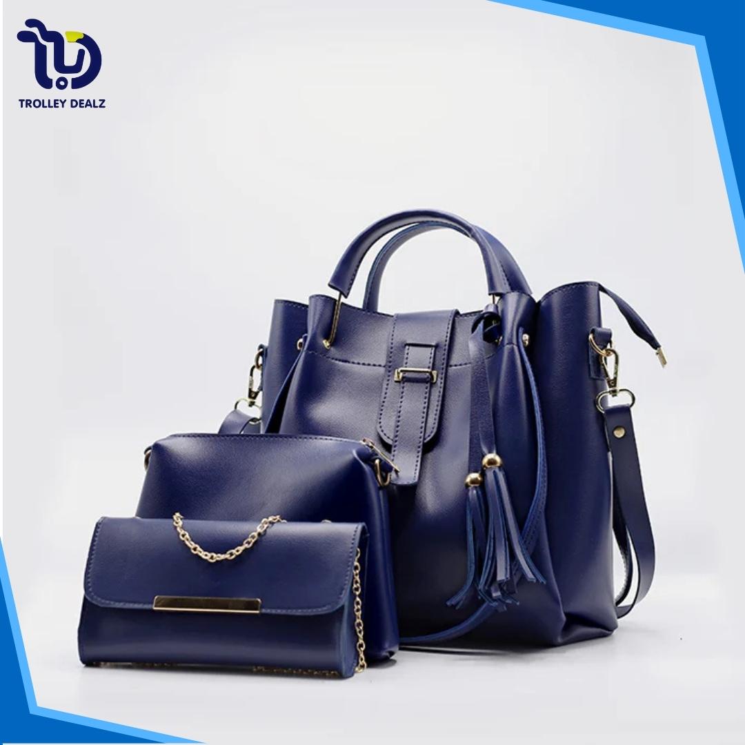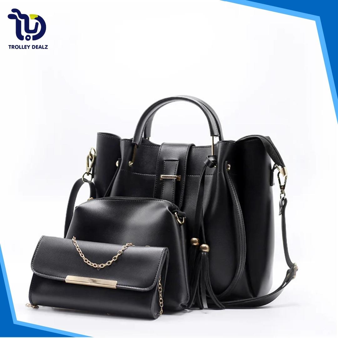 Queen 3 Pcs Handbag Set – A stylish and versatile trio featuring a spacious tote, a sleek crossbody, and a compact clutch. Crafted from premium faux leather with elegant detailing, this set is perfect for work, travel, or everyday wear.