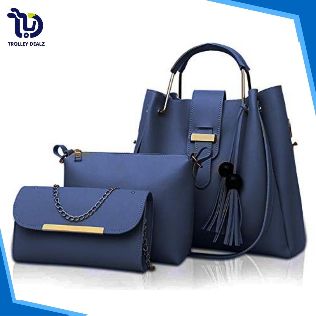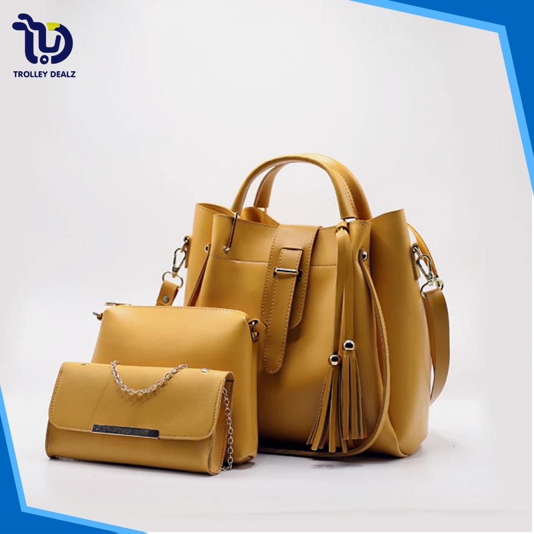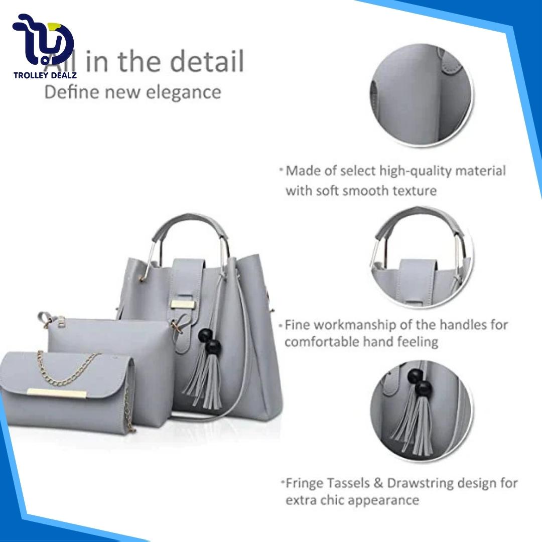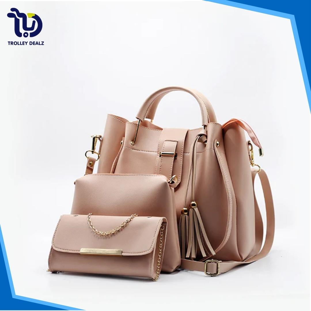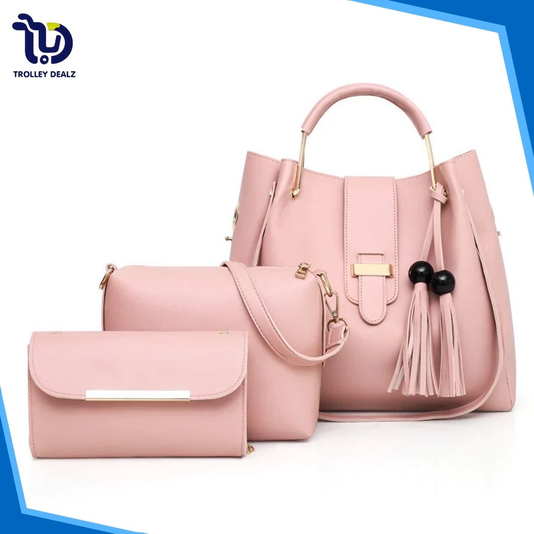 Queen 3 Pcs Handbag Set – A stylish and versatile trio featuring a spacious tote, a sleek crossbody, and a compact clutch. Crafted from premium faux leather with elegant detailing, this set is perfect for work, travel, or everyday wear.