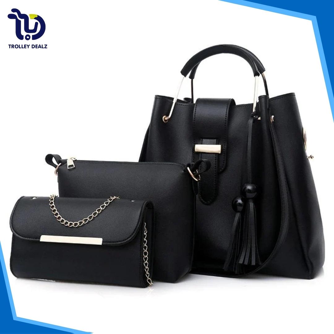 Make a bold fashion statement with the Queen 3 Pcs Black Handbag—where luxury meets practicality!